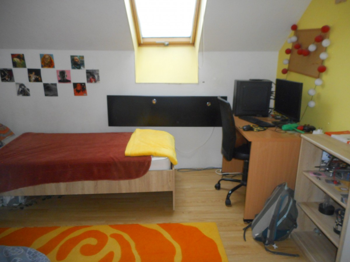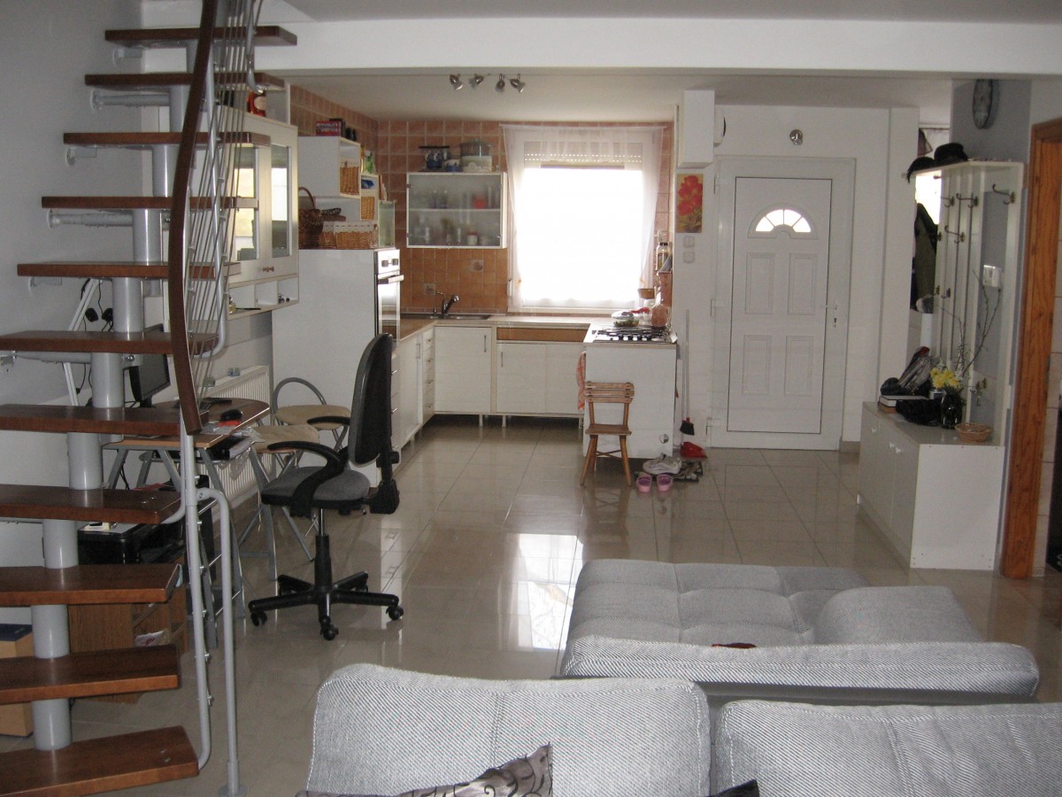 A felső szinten 4 kis szoba és egy hangulatos erkély kapott helyet melyek a világos előszobából külön bejárattal nyílnak. .